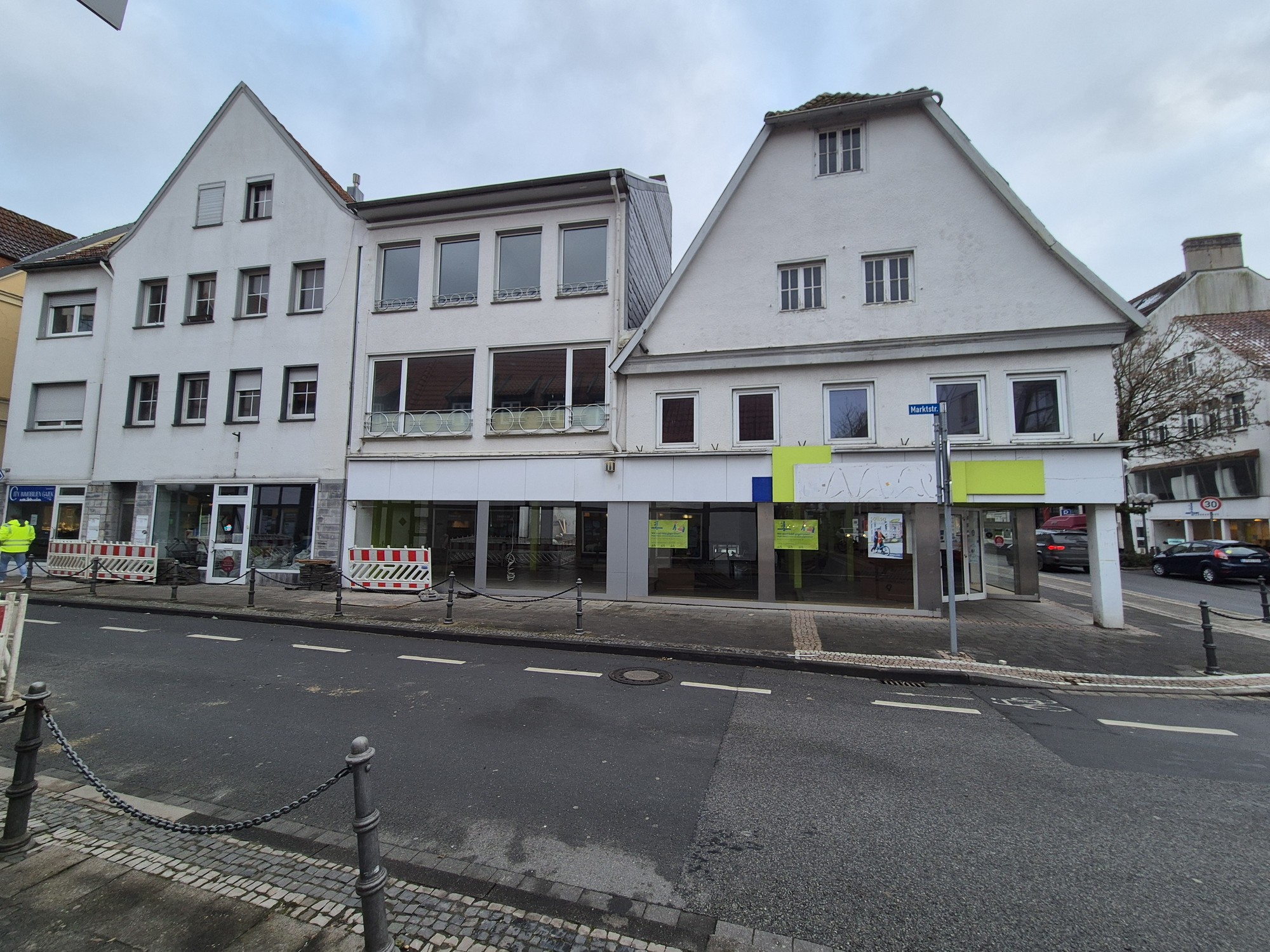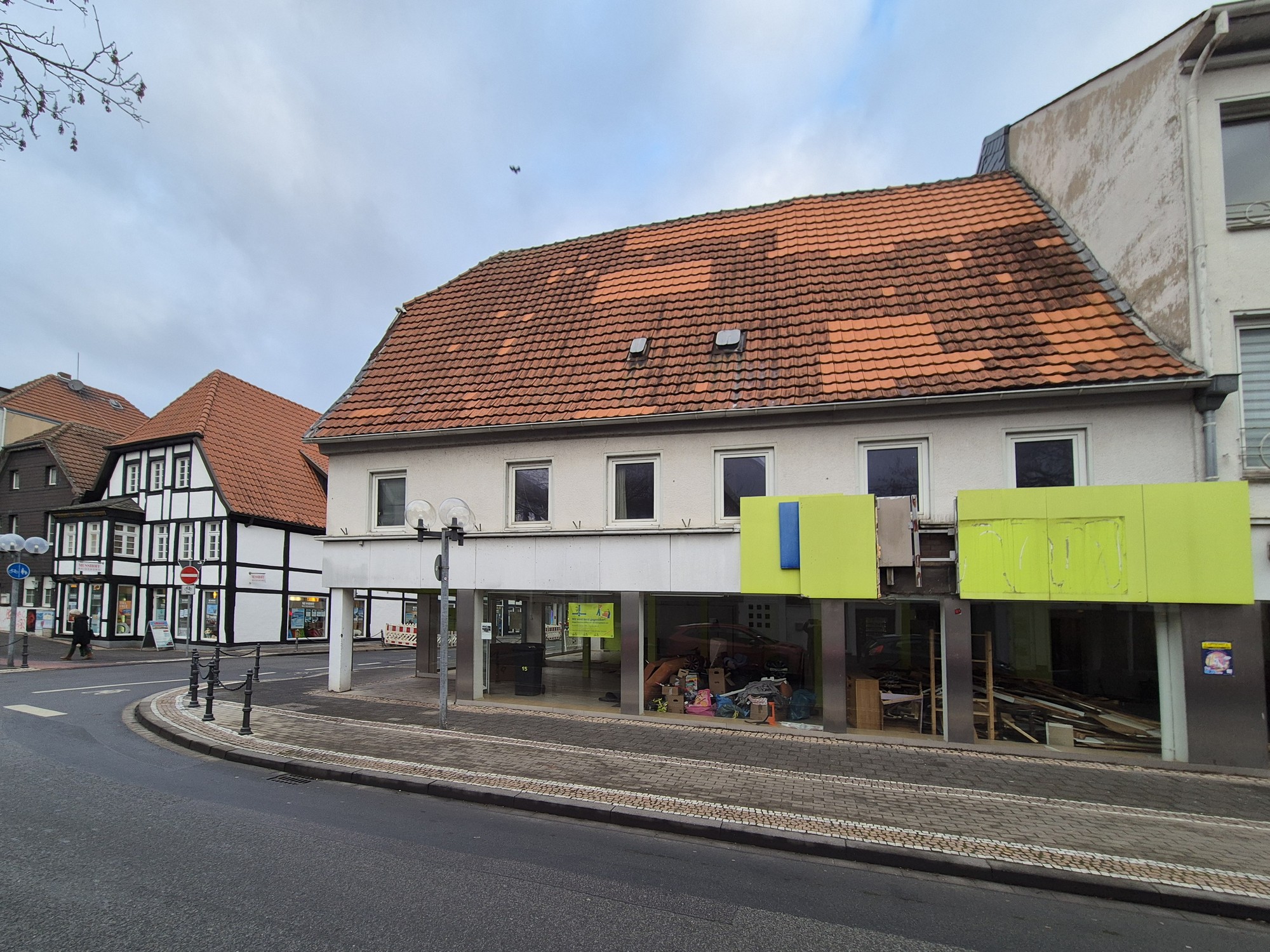 Aus der Historie weiß man, dass der abgewalmte Giebel des Hauses an der Ecke einmal mit Lüftel-Malerei verziert war und einen Möbelladen beinhaltete. Zuletzt war hier der Fahrradladen Schulte-Hostede beheimatet, der auch im Neubau einen Platz finden wird.