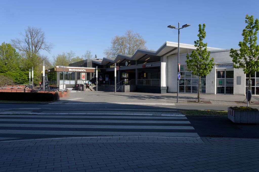 Der „neue“ Bahnhof wurde in zeitgemäßer Architektur in den siebziger Jahren gebaut mit einem deutlich reduzierten Raumprogramm. Er wurde mit den Jahren durch eine Gastronomie ergänzt (früher: Mc. Donalds), die hier auch für eine stärkere Belebung des Platzes sorgen sollte. Später folgte dann der An- und Umbau einer Radstation, die heute an die Grenzen ihrer Kapazität stößt.