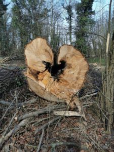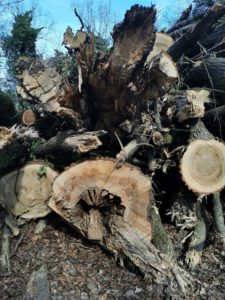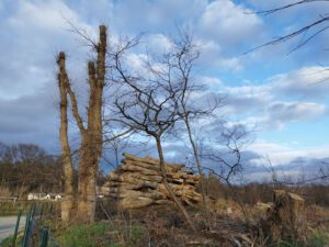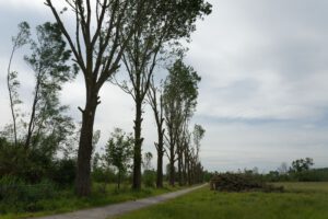 Auf diesen Bildern ist das Ausmaß der Schäden im Wald und an seinen Rändern zu erkennen. Auf dem Vorschaubild links ist der ehemalige Waldspielplatz zu sehen, der – lang ist es her – nördlich durch den ehemaligen Tiergarten Lippstadts flankiert war. Die weiteren Bilder zeigen den Weg zur Lippe mit seinen gerupften Pappeln, Waldwege und die südliche Kante zur Lippe. Hier haben nun die Anwohner den freien Blick auf die Niederung.