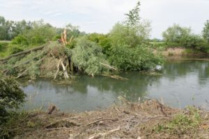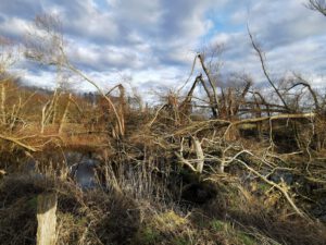 Es wird sicherlich lange dauern, bis der Fluss wieder so schön eingewachsen ist, zumal die Biber sehr bemüht sind , den Baumnachwuchs für ihre Bauvorhaben zu nutzen.