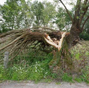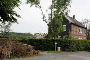 Das ganze Ausmaß der Schäden in der Innenstadt von Lippstadt war am Ende dieses Tages nicht absehbar. Spektakulär und besonders traurig: es wurde die alte Friedenseiche östlich der Marienkirche am Rathausplatz entwurzelt. In der Innenstadt wurden reihenweise Dächer abgedeckt. Auf einem Video, das auf Whatsapp kursierte, ließ sich deutlich eine Windhose erkennen, die kreisend Gegenstände in die Luft riss. Dachteile landwirtschaftlicher Gebäude, von der o.g. Fotovoltaikanlage oder auch Boote des WSC im Grünen Winkel wurden hunderte Meter durch die Luft gewirbelt.