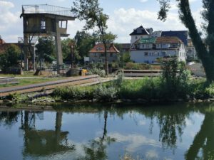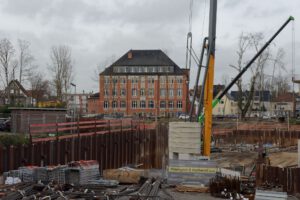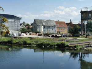 Ein Blick auf das Umfeld der Lippe-Baustelle an der Burgmühle, das wohl noch lange brauchen wird, um so schön eingegrünt wie früher zu sein.