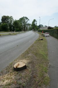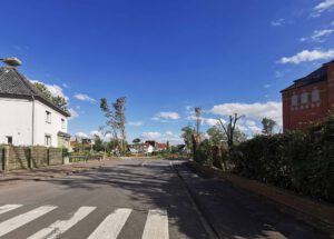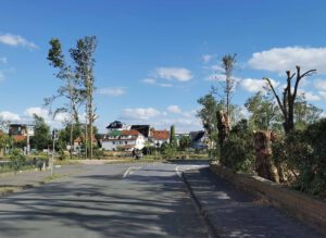 Entlang der Beckumer Straße wurden in diesem Bereich alle Straßenbäume entwurzelt.